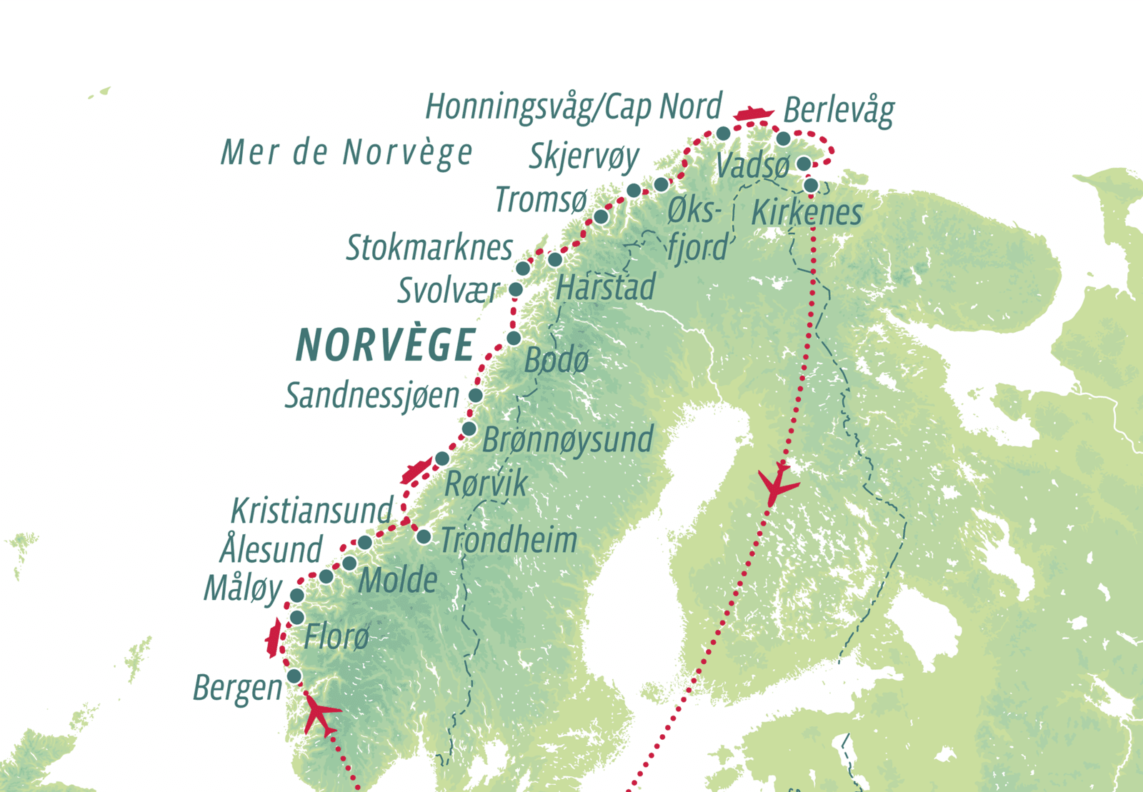Am Vormittag kommen wir in Honningsvåg an, dem Portal zum Nordkap, wo ein Globusdenkmal die nördlichste Spitze des europäischen Festlands markiert. Der optionale Ausflug zu dieser beeindruckenden Landzunge ist sehr beliebt. Sie sollten also frühzeitig buchen.
