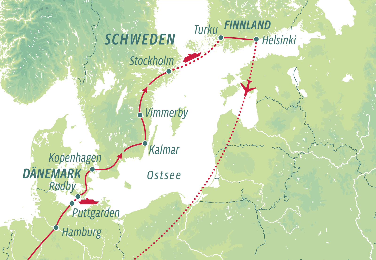 Erleben Sie die faszinierende Vielfalt Skandinaviens auf einer unvergesslichen Rundreise – von den Kanälen Kopenhagens über das königliche Stockholm, das historische Kalmar und das idyllische Vimmerby bis hin zur modernen Ostseeperle Helsinki. Diese Reise verbindet charmante Städte, beeindruckende Natur und kulturelle Höhepunkte zu einem harmonischen Ganzen.