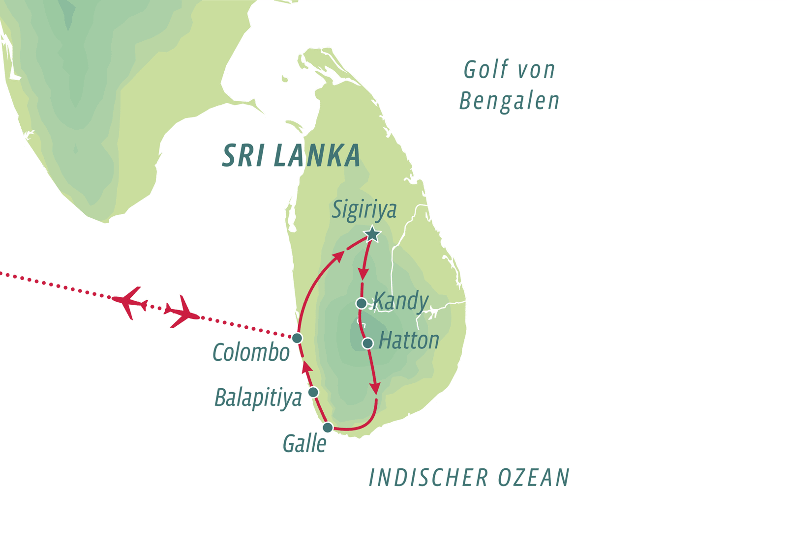 Entdecken Sie das faszinierende Sri Lanka – eine Reise zu den Highlights der Insel! Vom Dambulla Höhlentempel über die majestätische Sigiriya Felsenfestung bis hin zu den spirituellen Schätzen von Kandy. Genießen Sie eine malerische Zugfahrt durch grüne Teeplantagen und erleben Sie das koloniale Galle Fort. Abschließend entspannen Sie an den traumhaften Stränden von Sri Lanka
