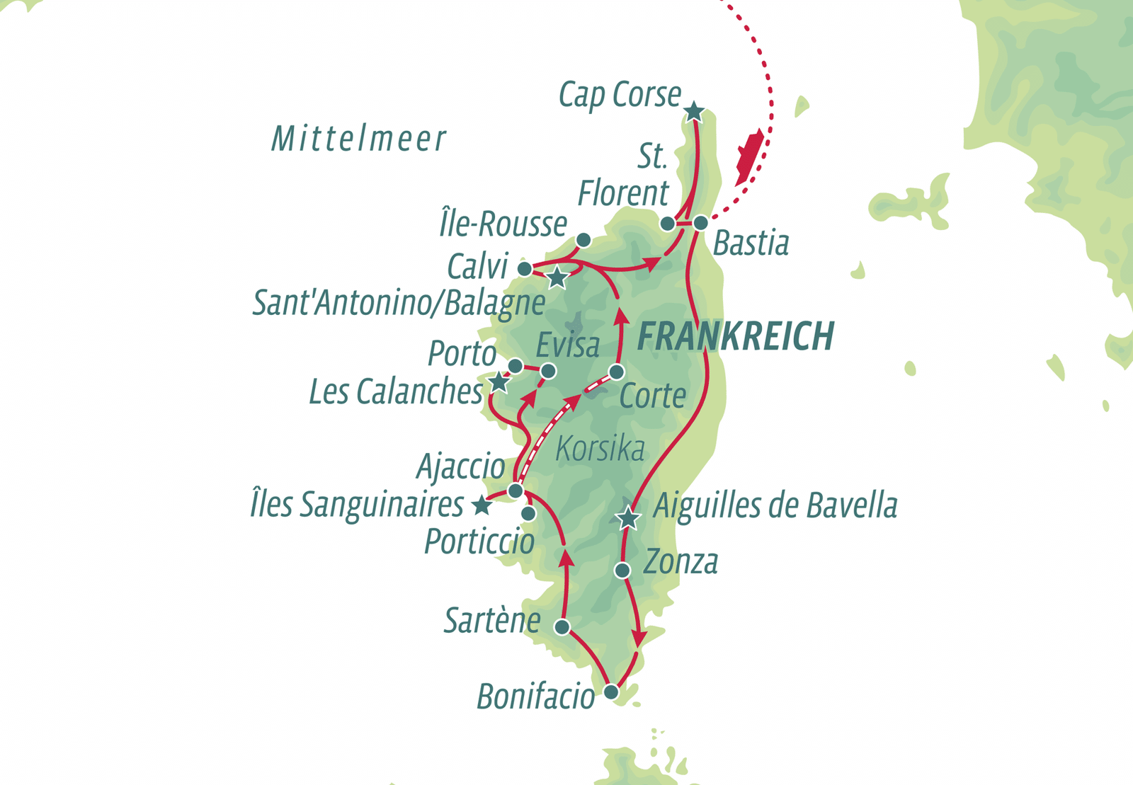Diese Rundreise auf Korsika verspricht unvergessliche Eindrücke zwischen wilden Bergen und traumhaften Küsten. Die „Insel der Schönheit“ vereint mediterranes Flair, authentische Dörfer und eine faszinierende Natur. Ob malerische Buchten oder charmante Hafenstädtchen – auf Korsika findet jeder Reisende sein ganz persönliches Paradies.