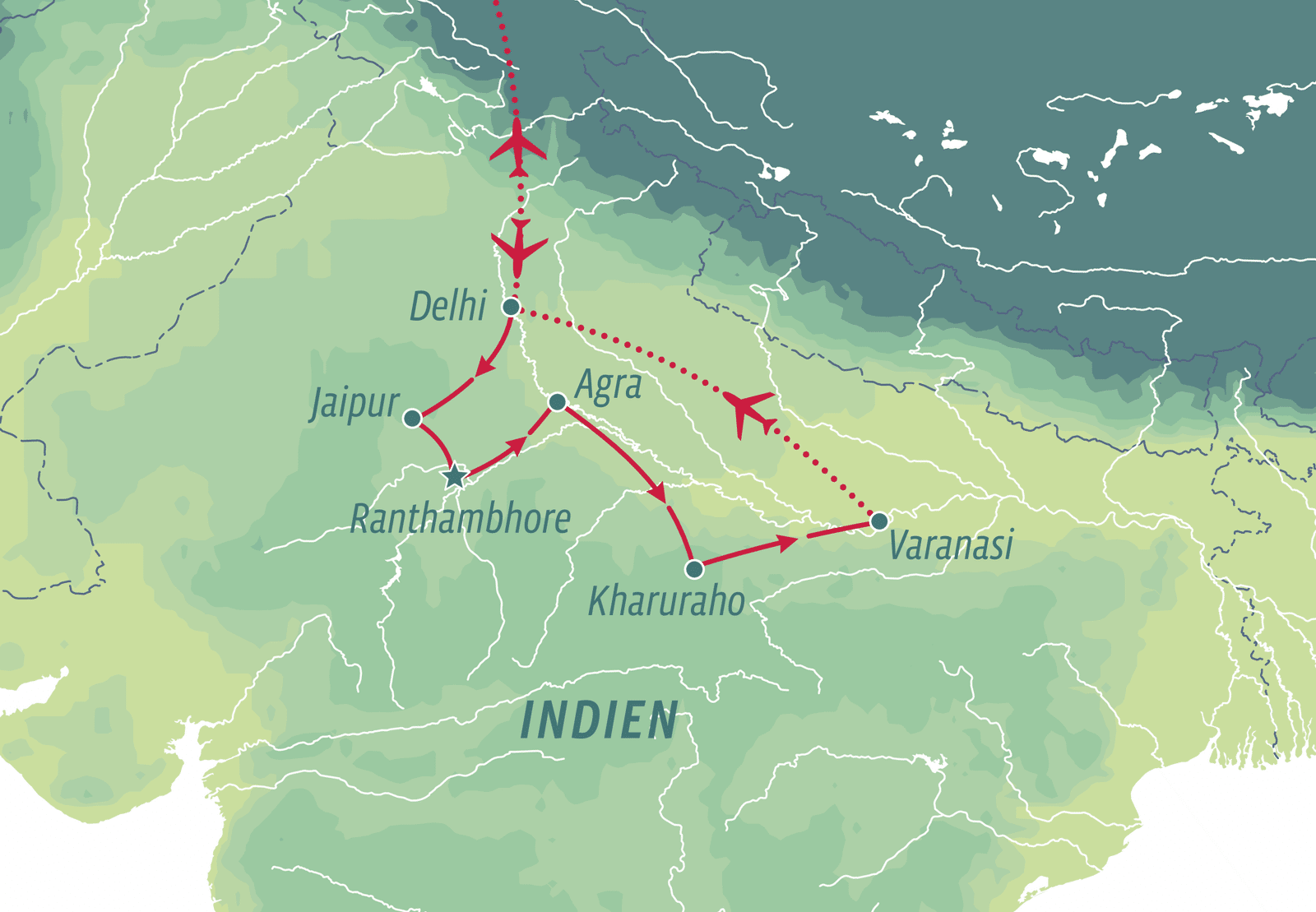 Entdecken Sie die Vielfalt Indiens auf einer Reise durch historische Städte, prachtvolle Paläste, beeindruckende Tempel und faszinierende Nationalparks. Erleben Sie Kultur, Geschichte und Natur hautnah – von Delhi über Jaipur und Agra bis nach Varanasi.