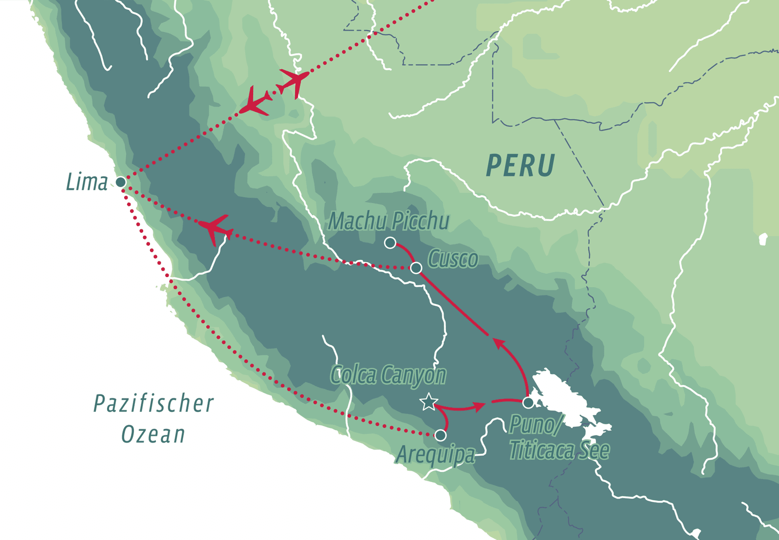 Erleben Sie Peru – von der kolonialen Pracht Limas und Arequipas über die spektakulären Landschaften des Colca-Tals und des Titicacasees bis hin zum mystischen Machu Picchu. Entdecken Sie Cusco, das Herz des Inka-Reiches, und tauchen Sie ein in seine faszinierende Kultur.